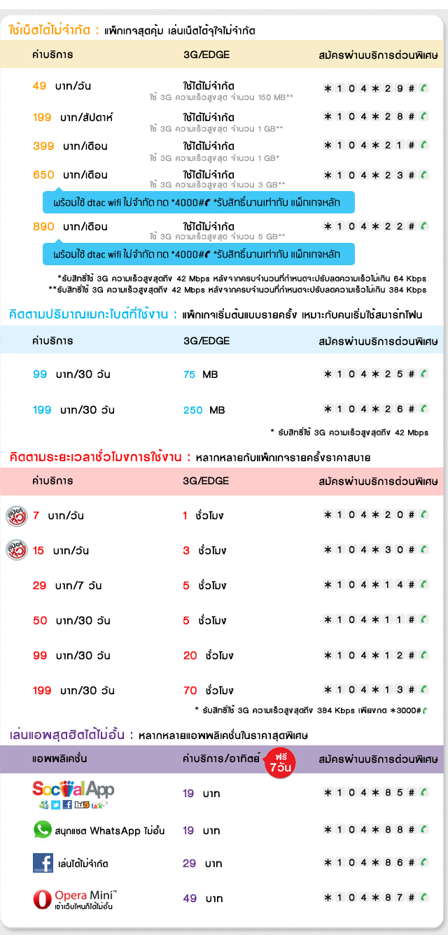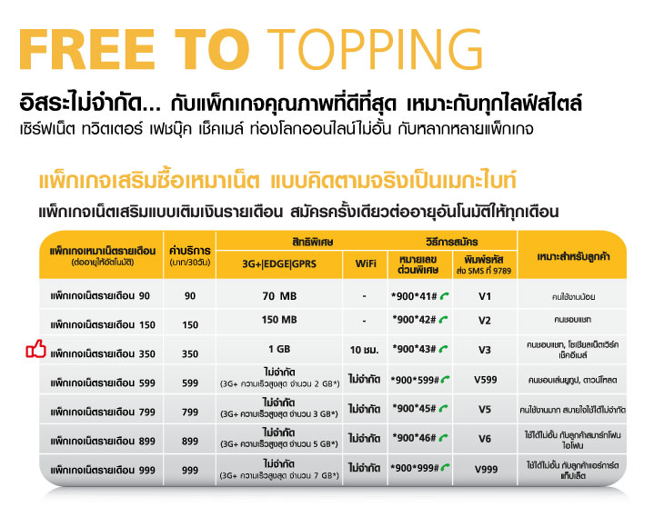 สะดวก และยากต่อการตัดสินใจได้ว่าแพ็คเกจของค่ายไหนคุ้มค่าที่สุด จึงขอนำเสนอตารางเปรียบเทียบแพ็คเกจแบบ