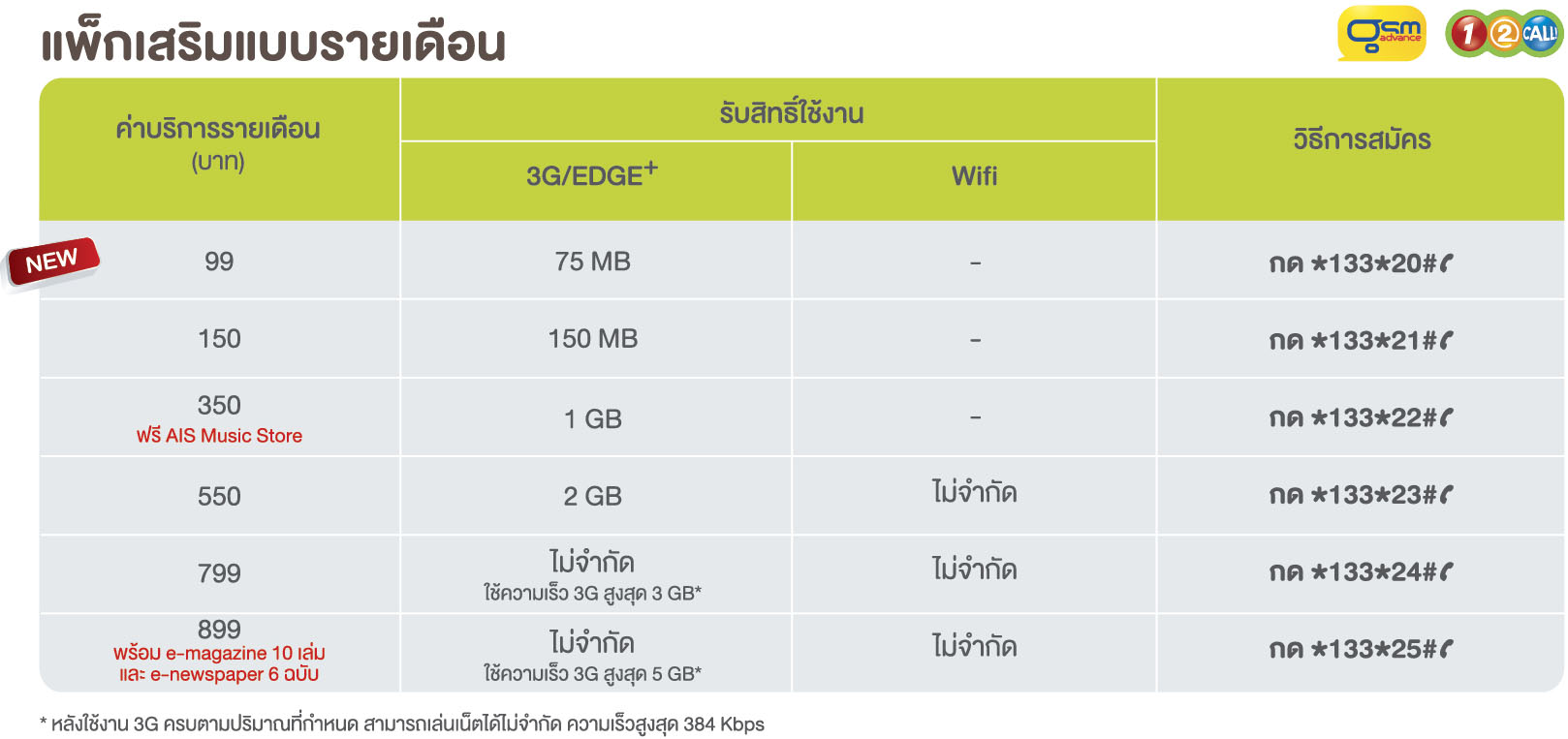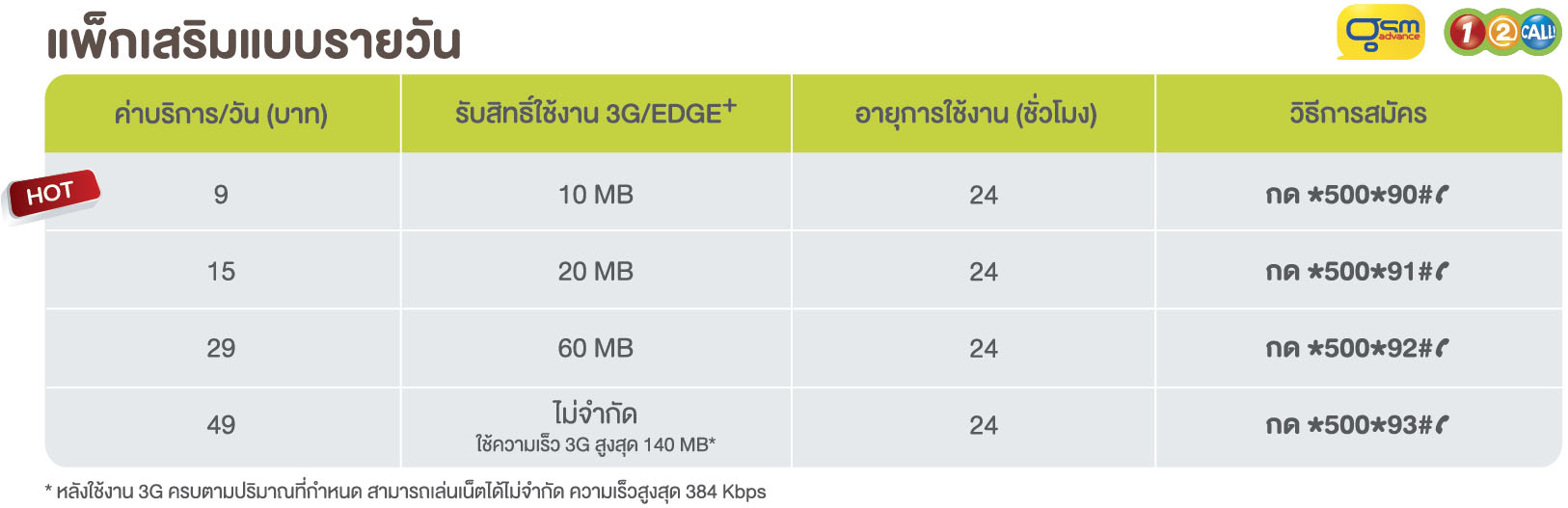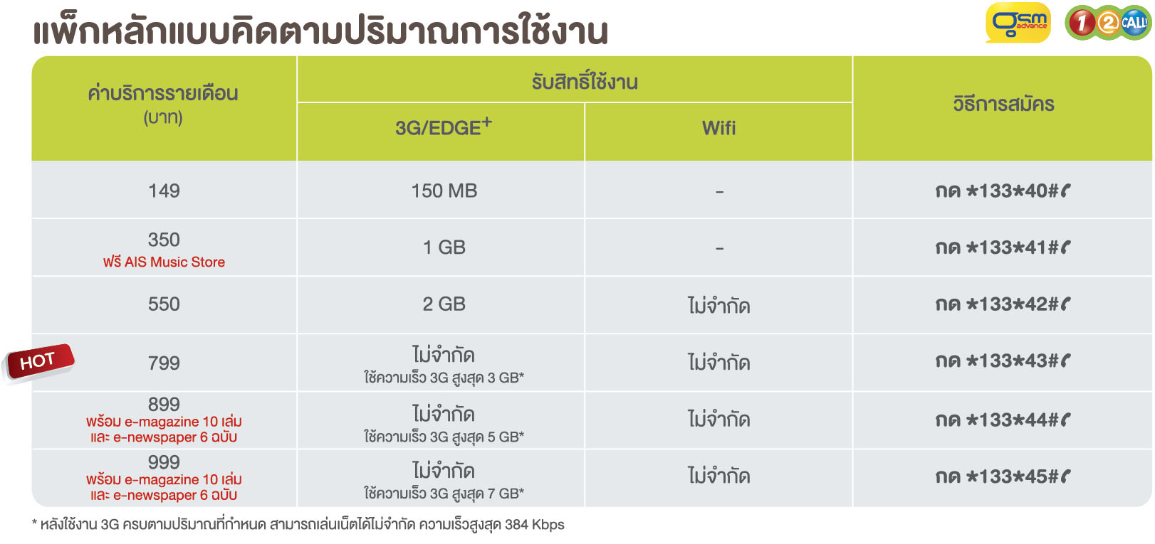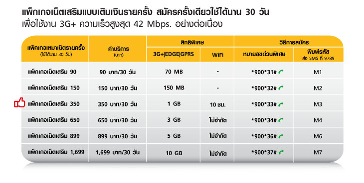 สวัสดีครับวันนี้ Aircard Service ขอนำเสนอตารางเปรียบเทียบแพ็คเกจปริมาณการใช้งาน 3G แบบเติมเงินของ