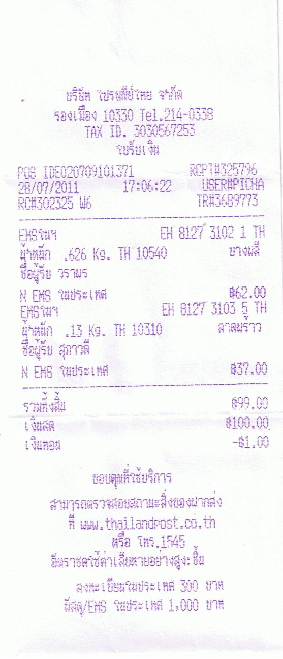 คุณสุภาวดี > EH 812731035 TH ส่งสินค้าให้เรียบร้อยแล้วนะคะโอกาศหน้าเชิญแวะเลือกชื้อสินค้ากับร้านของเราได้อีกนะคะขอบคุณมากค่ะ