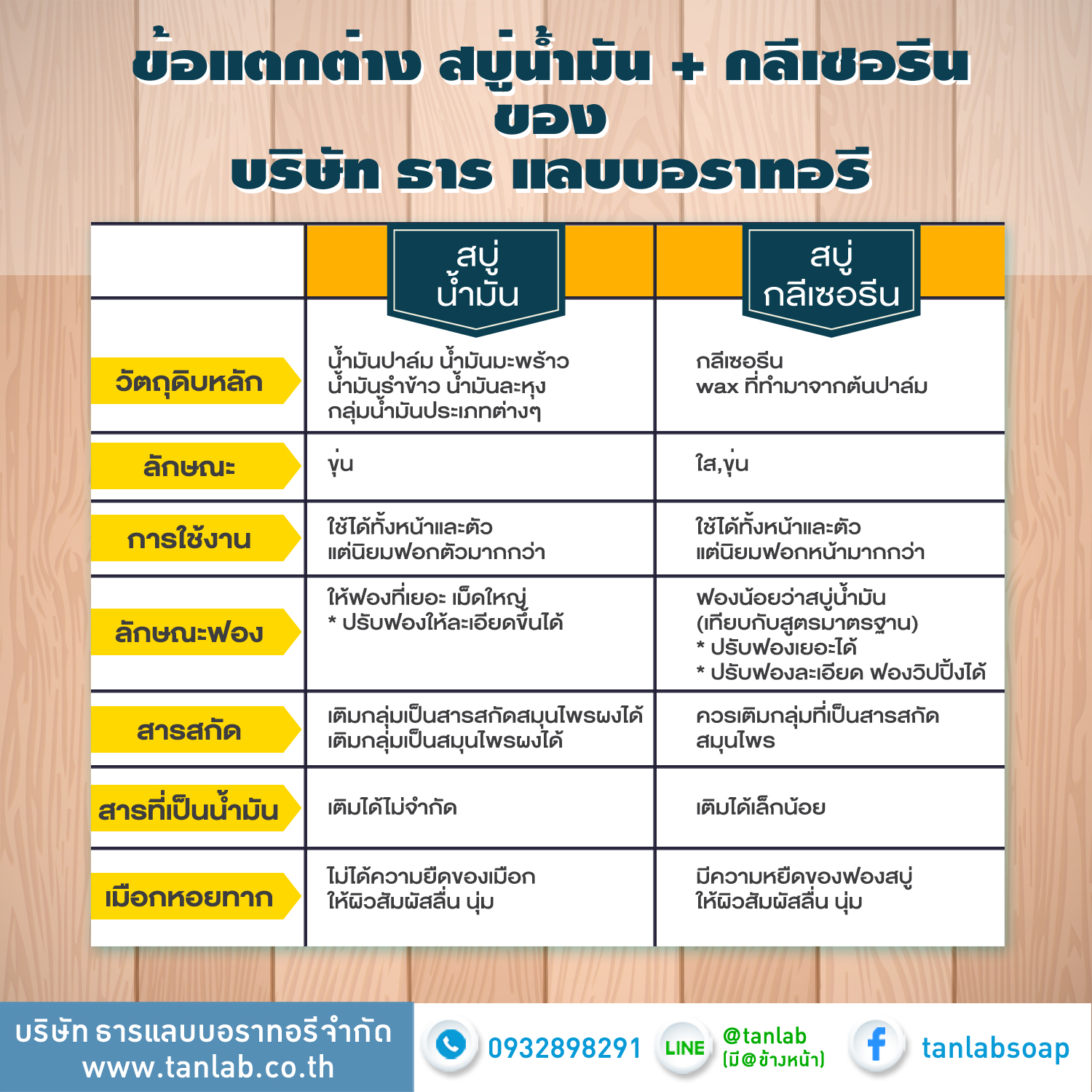 สบู่กลีเซอรีนของบริษัทธาร แลบบอราทอรีจำกัด เป็นเกรดพรีเมี่ยม เรามีทั้งเนื้อใส และเนื้อขุ่น สามารถเพิ่มสารสกัดตามความต้องการลูกค้า เพิ่มมูลค่ารูปลักษณ์ด้วยการปั๊มรูปทรงด้วยโมลทองเหลือง สามารถปั๊มโลโก้ได้ตามเงื่อนไข