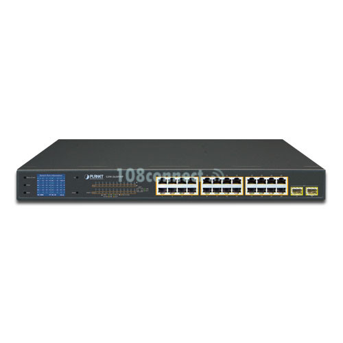 SWITCH (สวิตซ์) PLANET GSW-2620VHP 24-Port 10/100/1000T 802.3at PoE + 2-Port Gigabit SFP Ethernet Switch with LCD PoE Monitor (300W)
