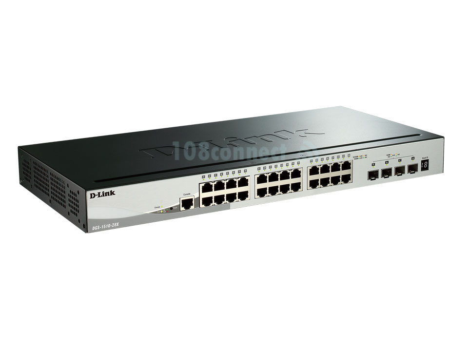 DGS-1510-28X 24-port UTP 10/100/1000Mbps, 4-port 10G SFP+ (H/W : A1, Rackmountable)28-Port Layer 3 Lite Smart Managed Gigabit Switch with 4 10G uplink