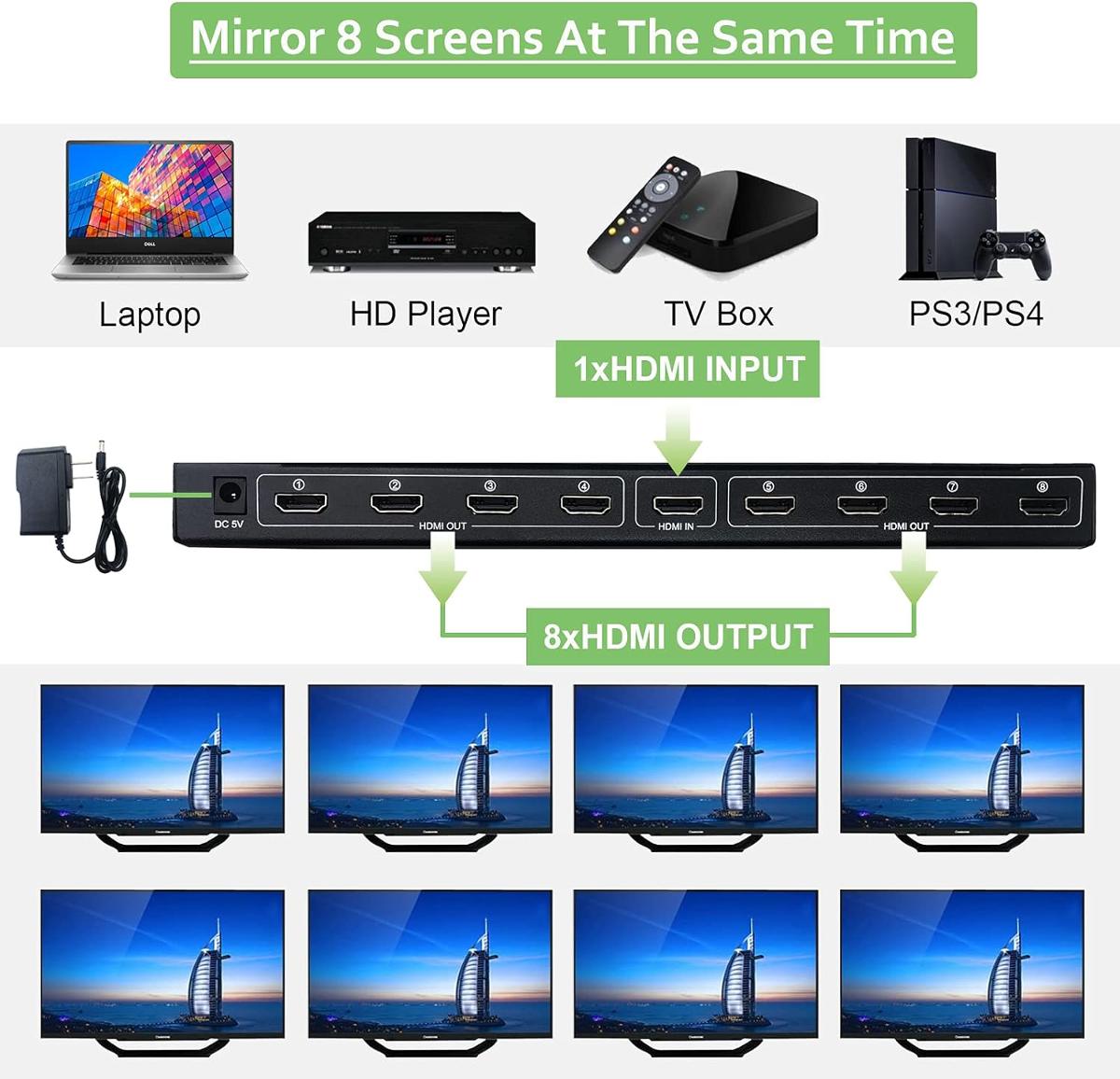 GLINK GLSP-014 HDMI Splitter 1 out 8
