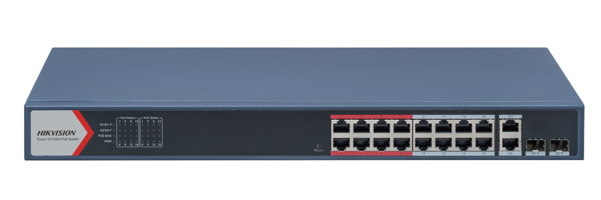 SWITCH (สวิตซ์) HIKVISION DS-3E1318P-EI 16 Port Smart POE Switch, 16 × 10/100 Mbps PoE ports, 2 × Gigabit combos