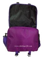 ทำจากผ้าซาตินสป้องมีหลากสี ลักษณะเนื้อผ้ามันวาว หรู ด้านหน้าเปิด-ปิดด้วยก้ามปู และซิปใส่ของ พร้อมสายสะพายและหูจับ