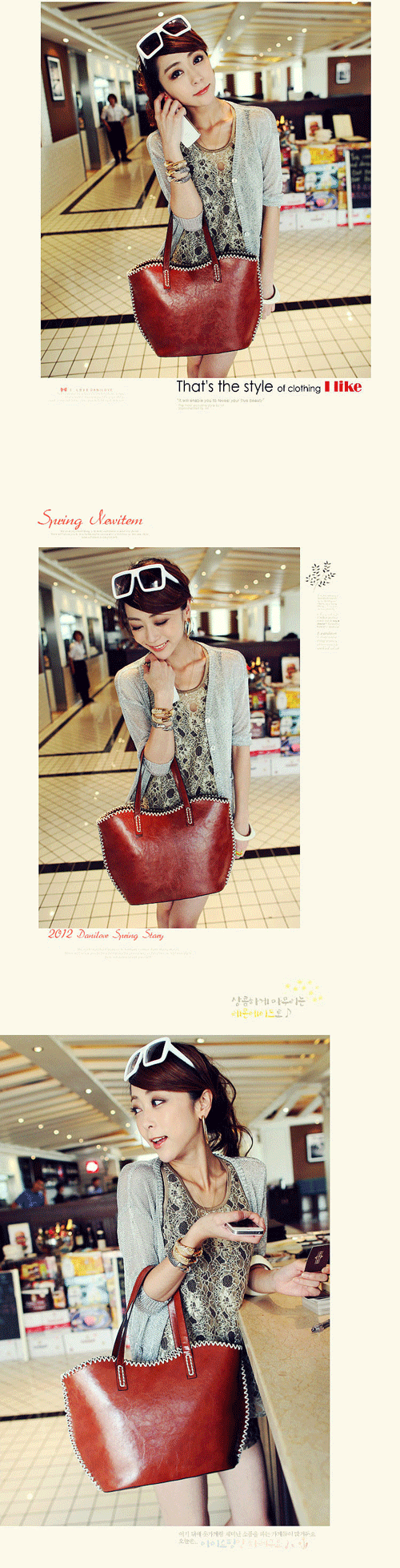 สีน้ำตาล สีสวยมาก มีดีไซน์เก๋ เล่นลายถักรอบกระเป๋า ดูดีมาก