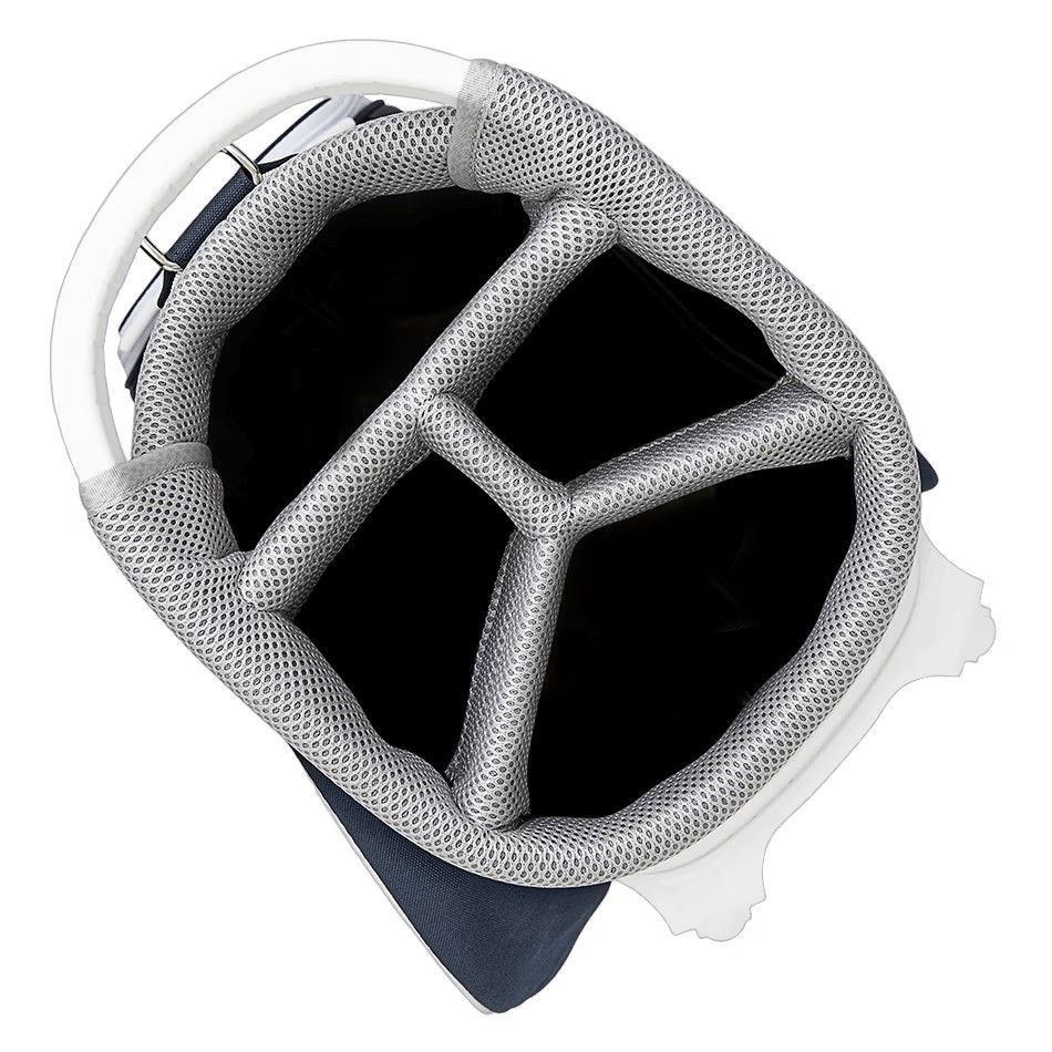 ด้วยน้ำหนักเพียง 2.5 กิโลกรัม ดีไซน์น้ำหนักเบา ช่องเปิดด้านบนขนาด 8.5 นิ้ว มีหูหิ้วและช่องแบ่ง 5 ช่องสำหรับจัดเก็บไม้กอล์ฟได้อย่างง่ายดาย มีช่องใส่ของทั้งหมดสี่ช่อง ช่องด้านหน้าประกอบด้วยช่องขนาดใหญ่ที่ใส่ไม้กอล์ฟได้ถึงสิบสองอันอย่างสะดวกสบาย
