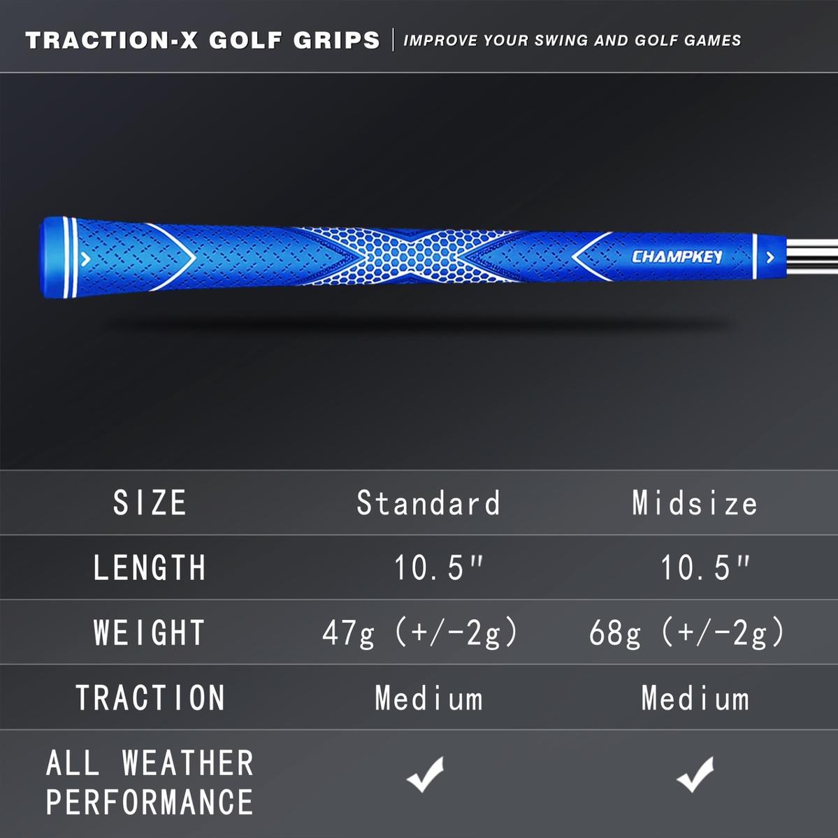 PACKAGE INCLUDES : 13 Traction-X Golf Grips with 15 Golf Tapes.