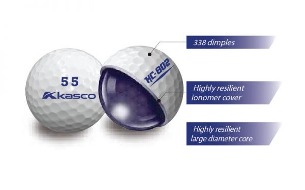 ลูกกอล์ฟ Kasco HC-802 HIGH COR SMALL GOLF BALL ลูกกอล์ฟขนาดที่เล็ก เพิ่มให้ระยะที่ไกลขึ้น เเน่่นอน ทำให้ออกจากหน้าไม้เร็วเเละไกล ดีไซน์ขนาดลูกที่เล็กกว่าปกติ