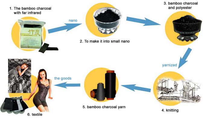 ระบบคาร์บอนไนซ์ใช้วิธีเผาคาร์บอนและถ่านเยื่อไผ่เพื่อให้เกิดประจุอิอินลบ ช่วยส่งเสริมการทำงานของอินฟาเรด >> จากนั้นนำสิ่งที่เผารวมกันมาผลิตเป็นเส้นใย >> แล้วจึงนำเส้นใยที่ได้เข้ากระบวนการผลิต ฝังในชุดนาโนคาร์บอน จะทำให้เกิดระบบการเผาผลาญที่ยาวนาน เกิดคุณสมบัติการดูดซับสารพิษ หรือกลิ่นอันไม่พึงประสงค์ มากกว่าระบบเเบบเม็ดเเร่แบบเดิมมากกว่าหลายเท่า