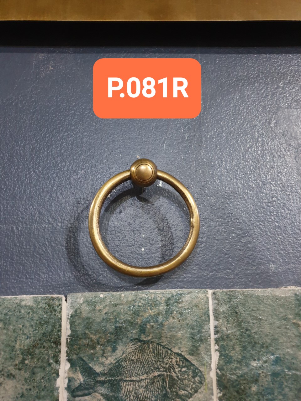 ฺBrass pull handles full brass. Item Code P.081R size head 20 mm. Ring 87 mm. Thickness 8 mm.