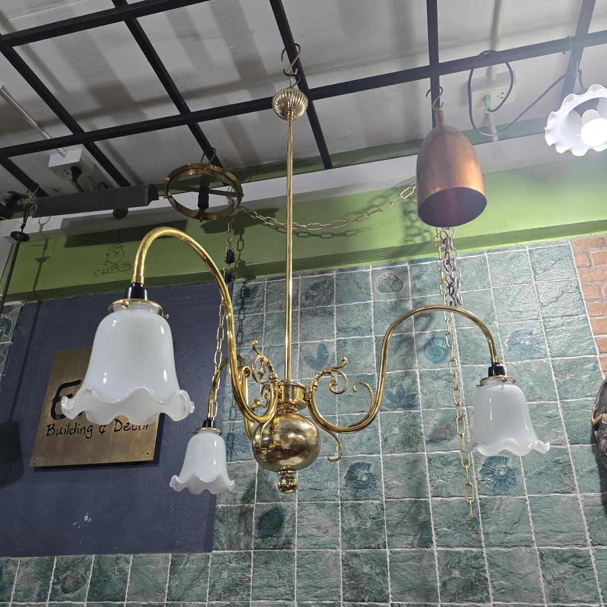 โคมไฟห้อยเพดานทองเหลืองแท้ 3 แขน รับผลิตโคมไฟตามแบบ ตามออเดอร์ สนใจโทรสอบถามได้ที่ 02 570 1987 ฝ่ายขาย 094 146 2696