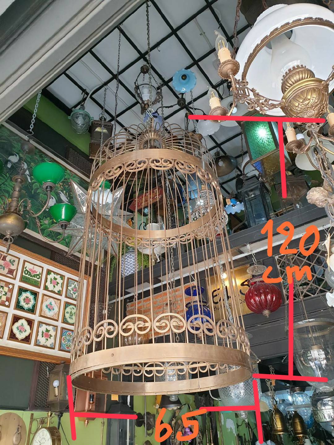 Bird cage lamp all is round full brass 4.7 mm.Item Code HGL65S size W 650 mm L 1200 mm.LT 2200mm