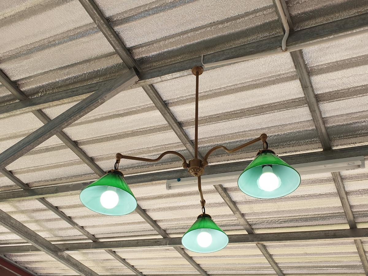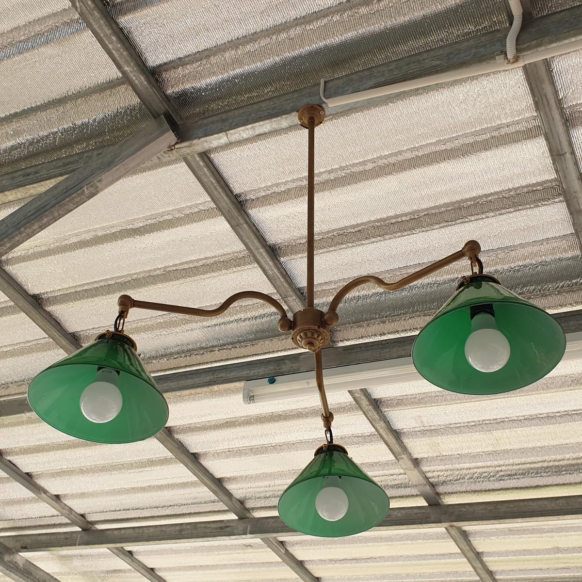 Hanging Lamp 3 arm green shade