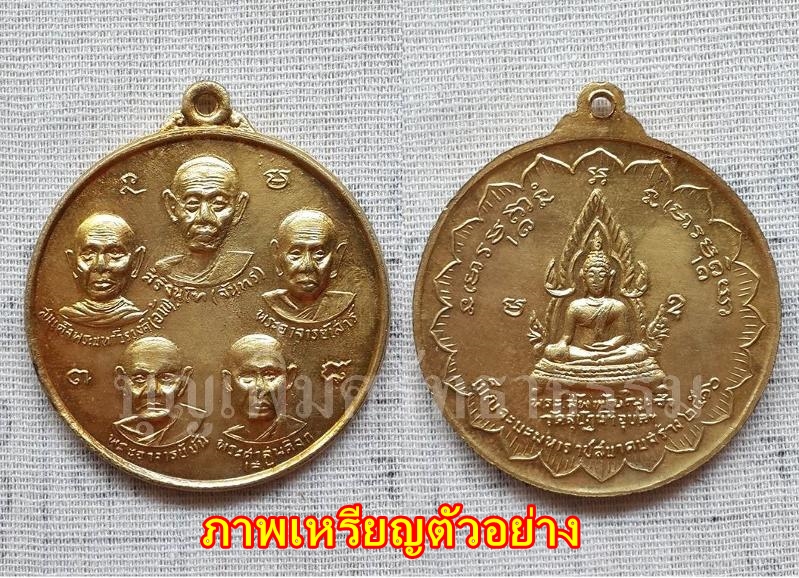 รูปของพระอริยสงฆ์ทั้ง 5 องค์ที่เป็นที่เคารพนับถือของชาวจังหวัดอุบลราชธานีและบุคคลทั่วไป เนื่องจากเป็นพระผู้ปฏิบัติดีปฏิบัติชอบนี้ จะรวมกันอยู่อีกด้านหนึ่งของเหรียญเรียกว่า “เหรียญเบ็ญจะมหามงคล” และมีอักษรขอมแทรกไว้ ส่วนอีกด้านหนึ่งของเหรียญให้นำรูปพระสัพพัญญูเจ้า ซึ่งเป็นพระประธานในโบสถ์วัดสุปัฏนารามวรวิหารใส่ไว้
