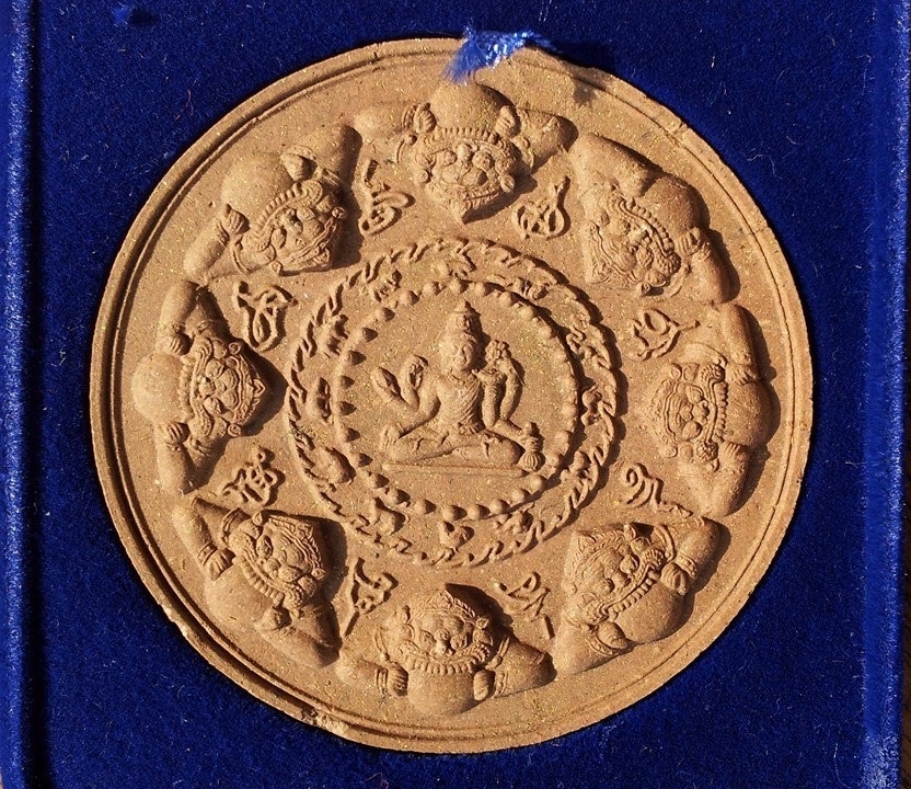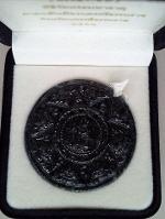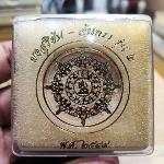 พระสวยไม่ได้ใช้เลย จมูกโด่งไม่มียุบ เหรียญมหาปราบ เนื้อตะกั่ว ขนาด 4 ซ.ม. พร้อมกล่องเดิม ราควัด 4,000 บาท ผมเช่ามาเองจากวัดและนำไปให้พระอาจารย์โชติท่านจารเพิ่มให้ ข้อมูลจากศิษย์ใกล้ชิดบอกว่าเป็นเนื้อที่มีมวลสารตะกรุดเก่า, เหรียญเก่า, และผสมหัวตะกั่วลูกปืน