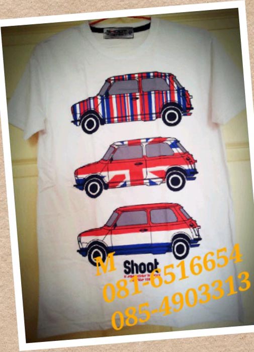(2.22)Shoot เสื้อยืด ชาย-หญิง สีครีมไข่ ลายรถมินิ Size M เนื้อผ้าเบาสบาย ถูกกว่าที่หน้าร้าน