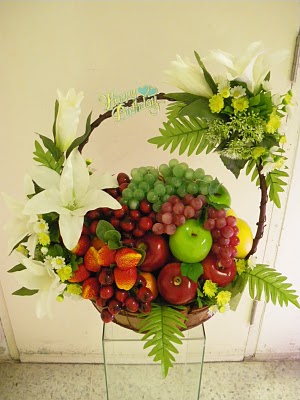 จัดกระเช้าผลไม้ ( fruit basket )  จะเหมาะสำหรับ แสดงความยินดี เยี่ยมผู้ใหญ่   เปิดร้านใหม่  เยี่ยมใข้  เลื่อนตำแหน่งใหม่ เป็นต้น