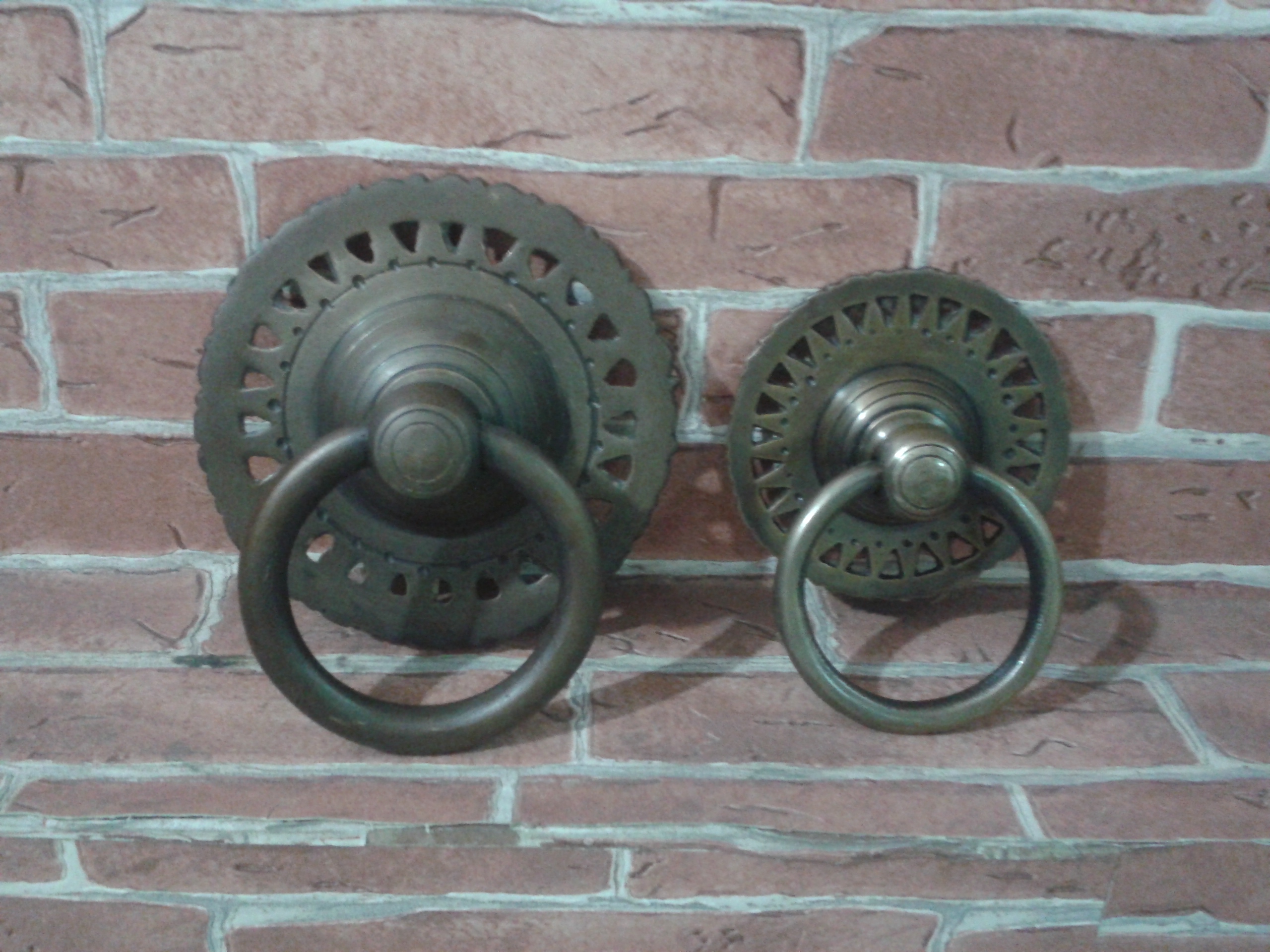 Brass Door Handle Item code P.080 size base wide 97 mm. ring 77 mm.