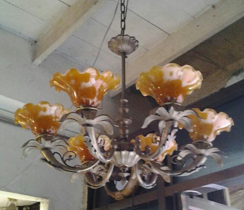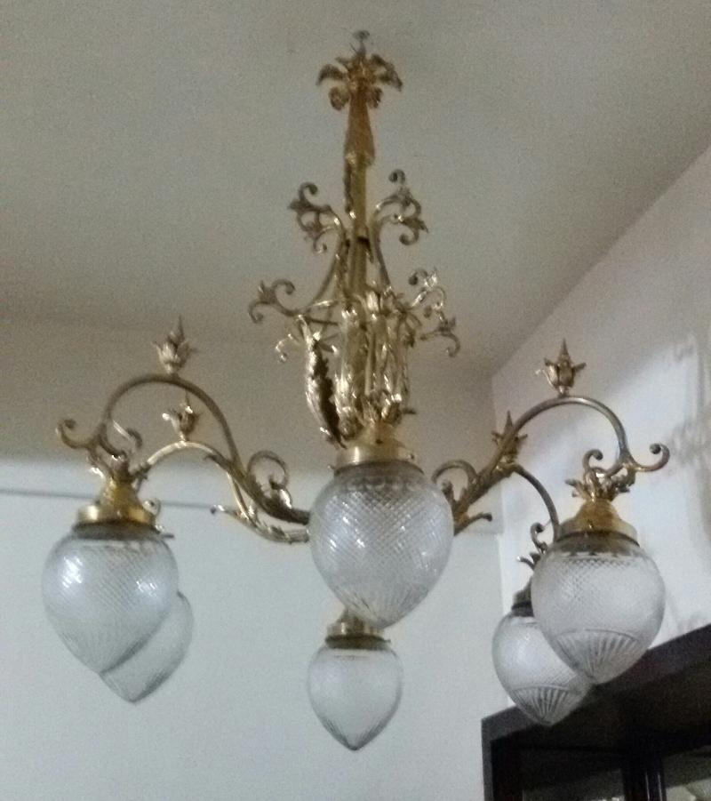 Hanging Lamp 6 arm Code AT300AD material brass with glass size wide 70 cm.